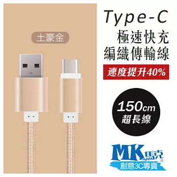 【MK馬克】TypeC 極速快充編織充電線 150cm - 土豪金 ![]() |