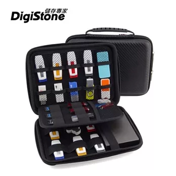 DigiStone 23格裝 3C多功能手提收納包(適用隨身卡碟-硬碟-行動電源-3C)-黑X1P【印花PU硬殼外殼+網布】